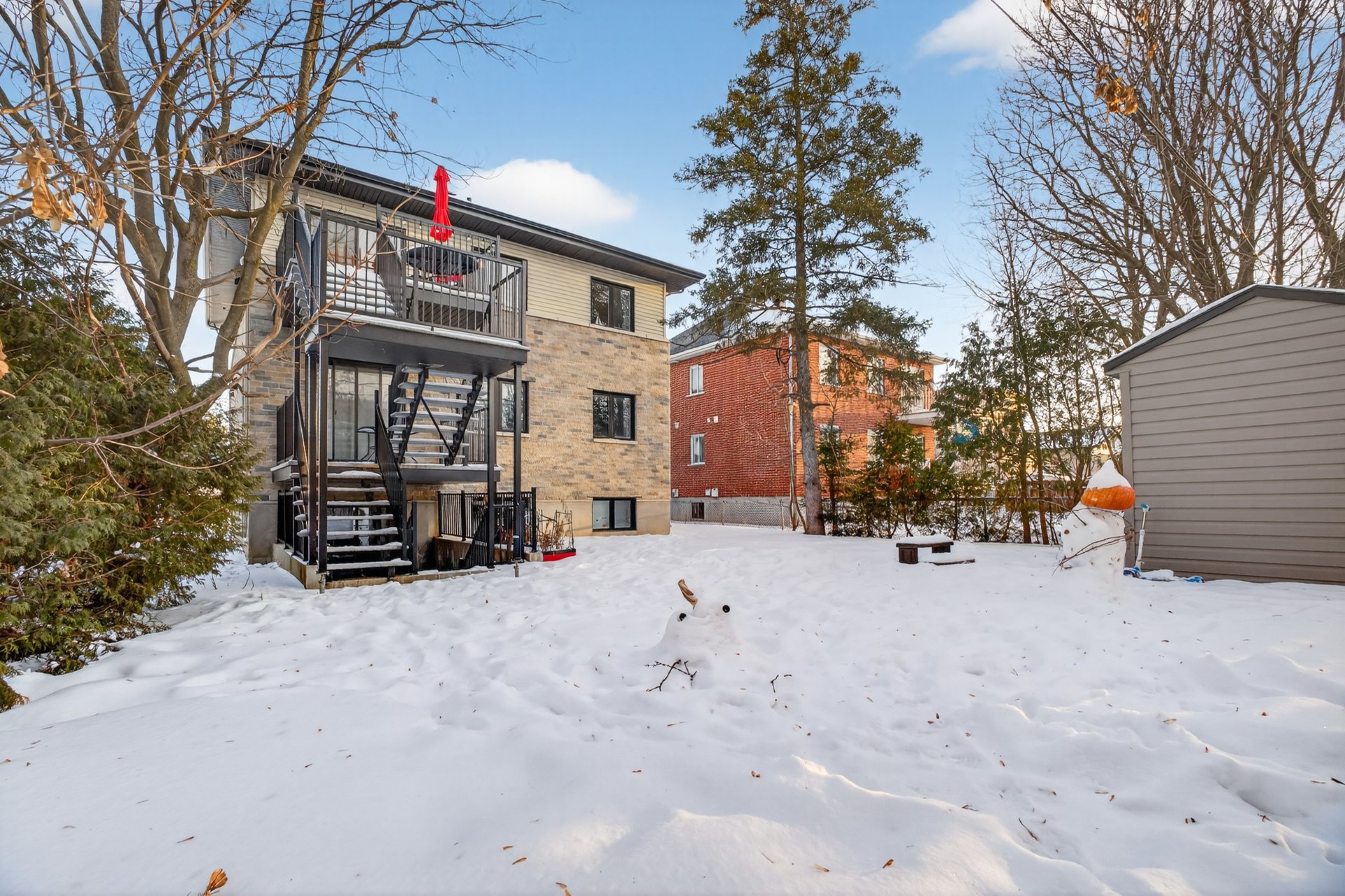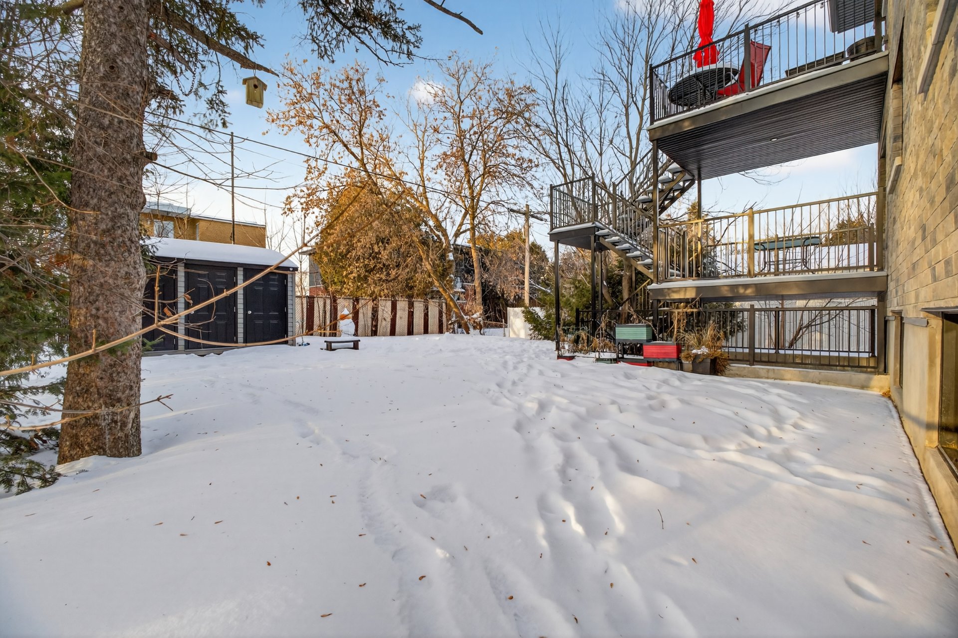 *Large rear balcony with stairs leading to the backyard
