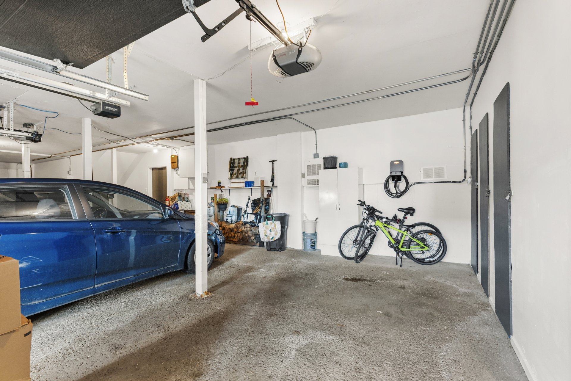 Included Light fixtures, curtain rods, stove, range hood, refrigerator, dishwasher August 2024, washer-dryer May 2024, central vacuum installation only, garage door opener connected with wifi, electric charging station.