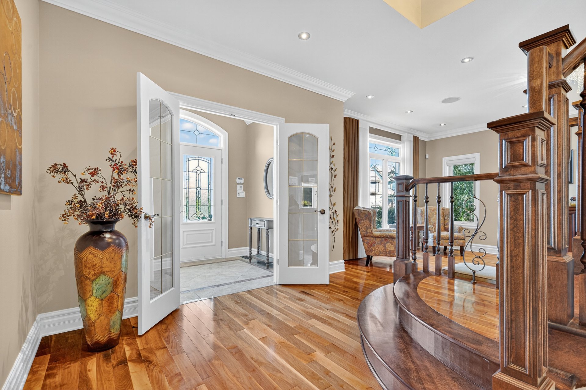 Upon entering, the home welcomes you with a sophisticated
