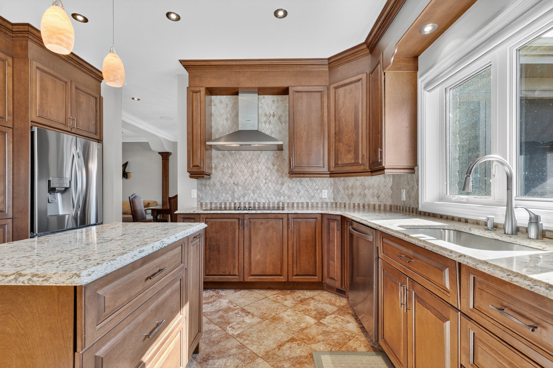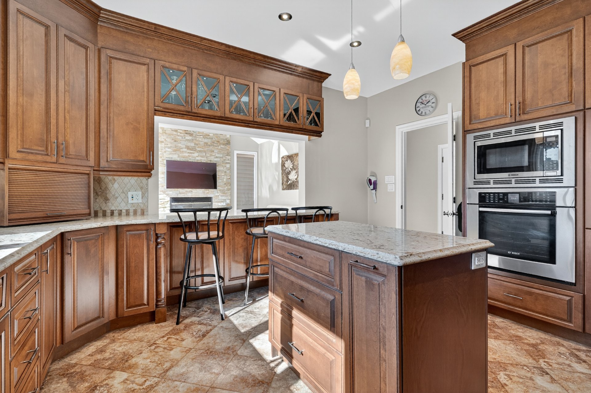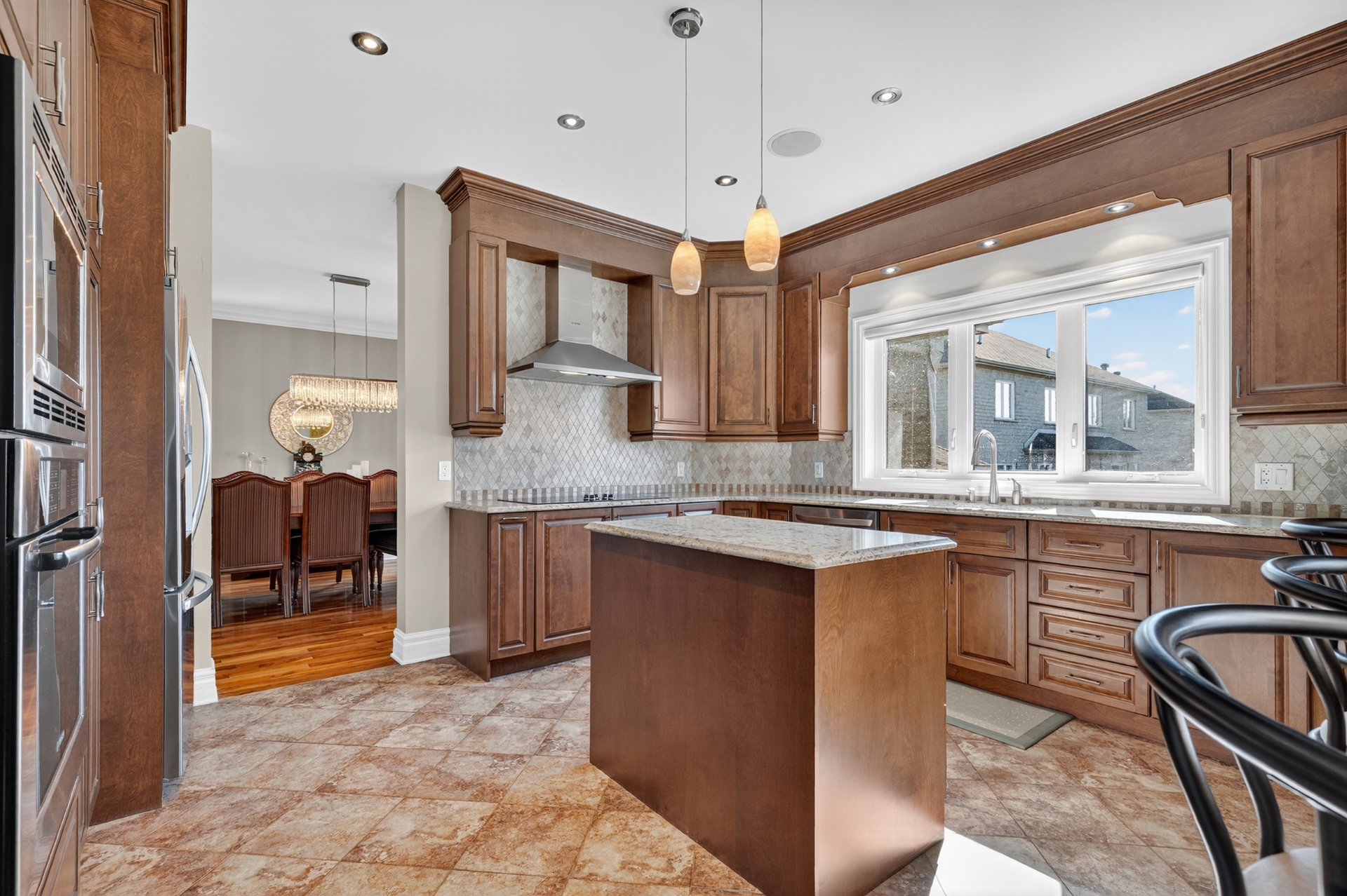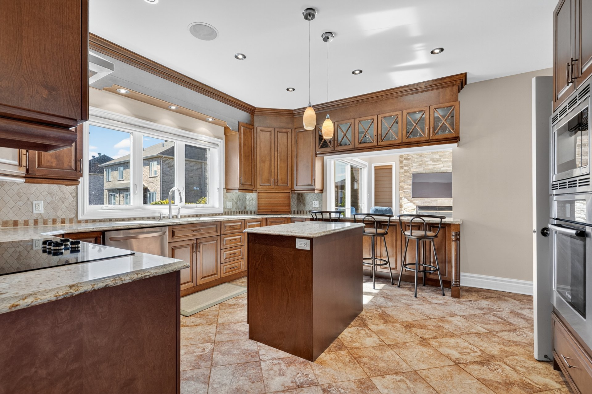 central island. The adjoining family room is ideal for