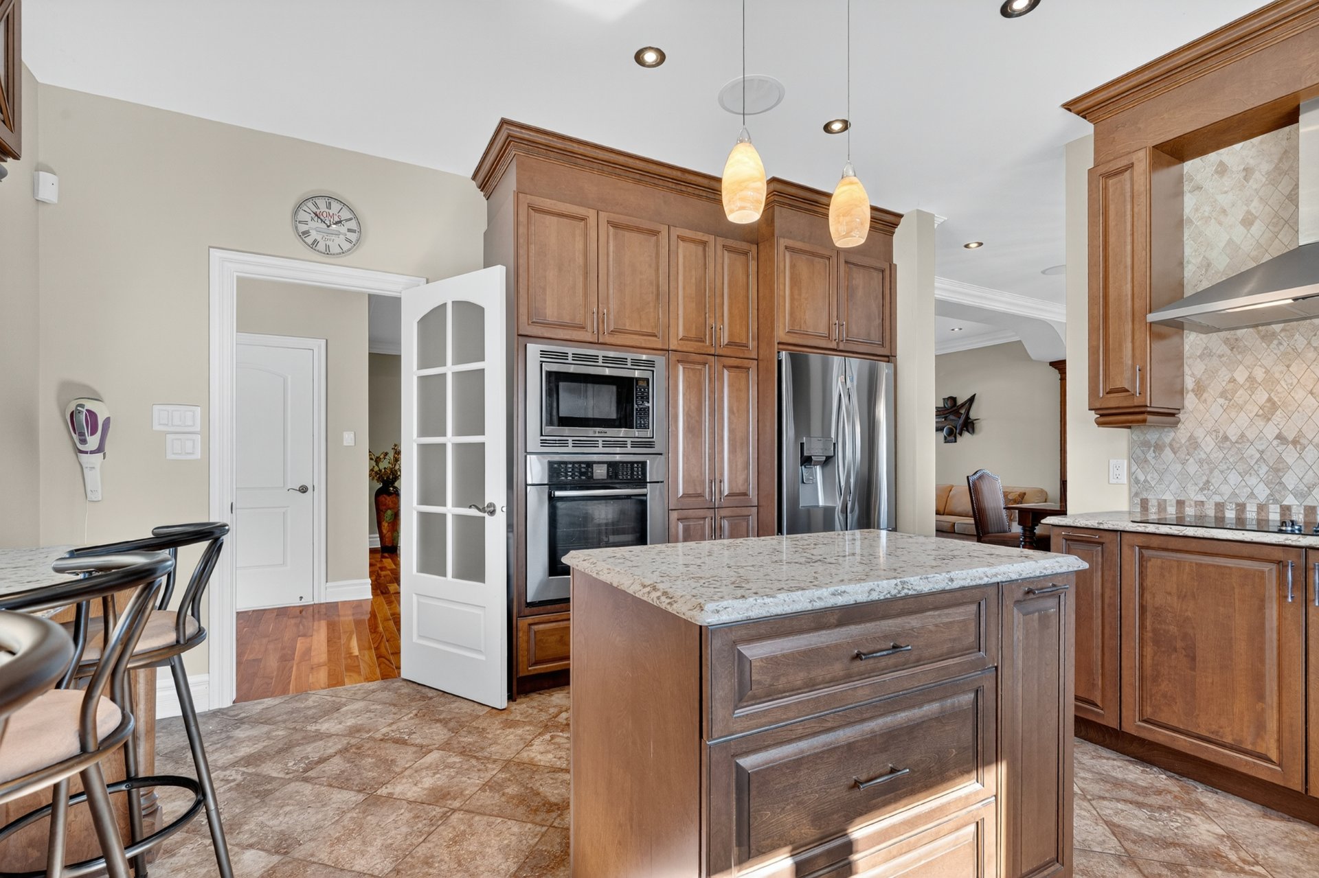 guests. The heart of the home is the chef-inspired kitchen,