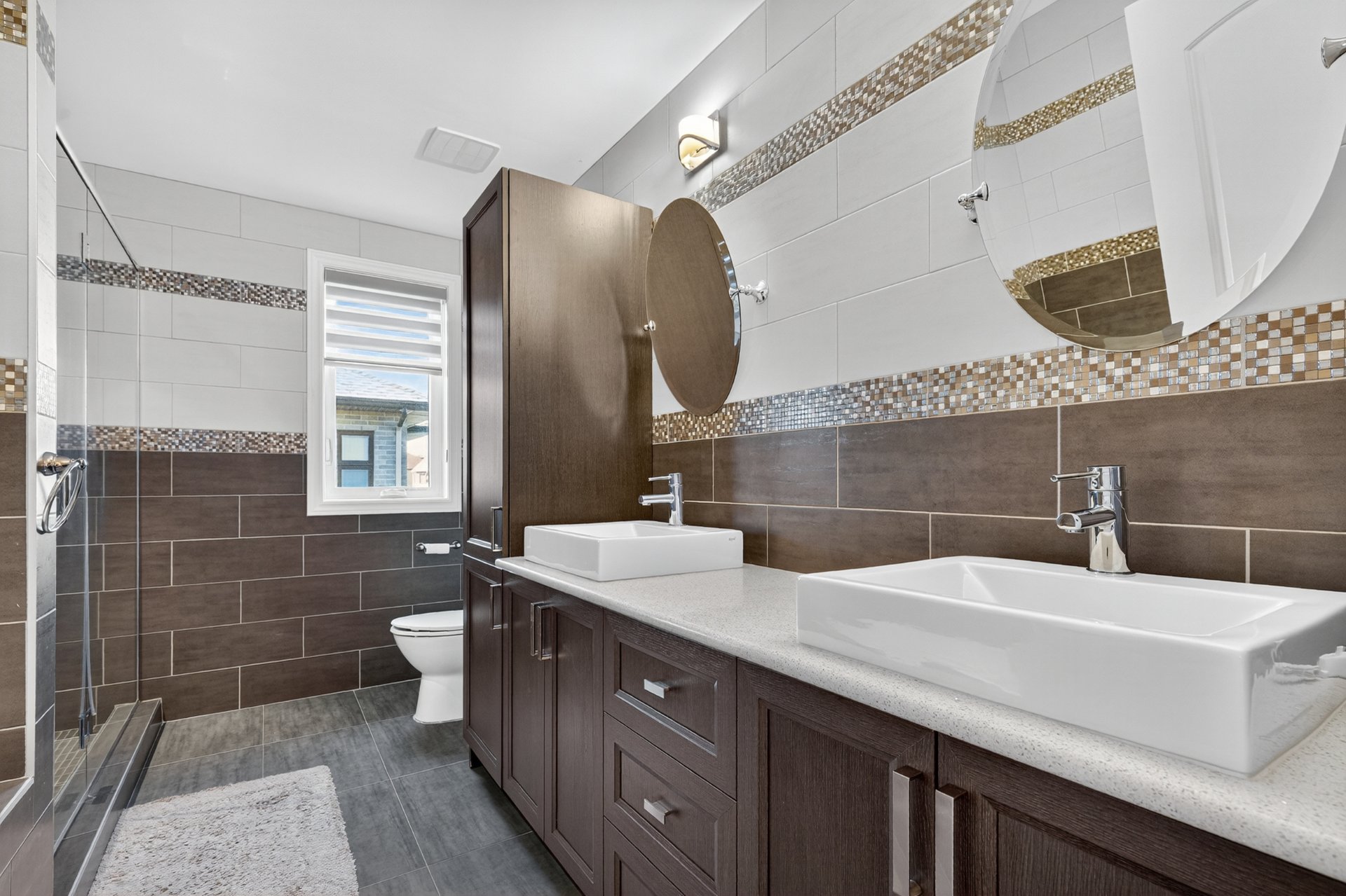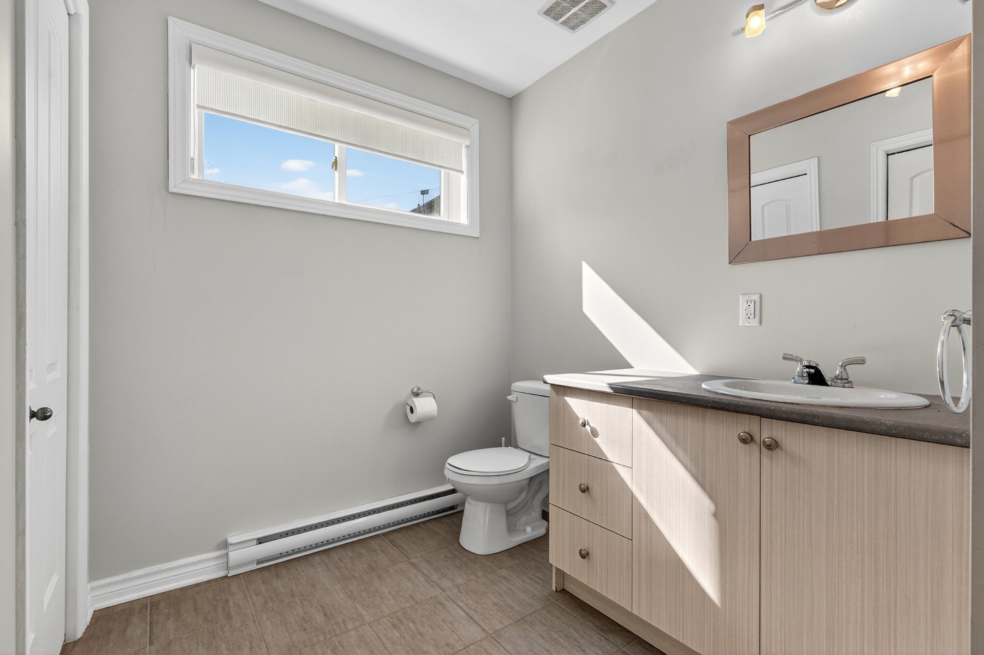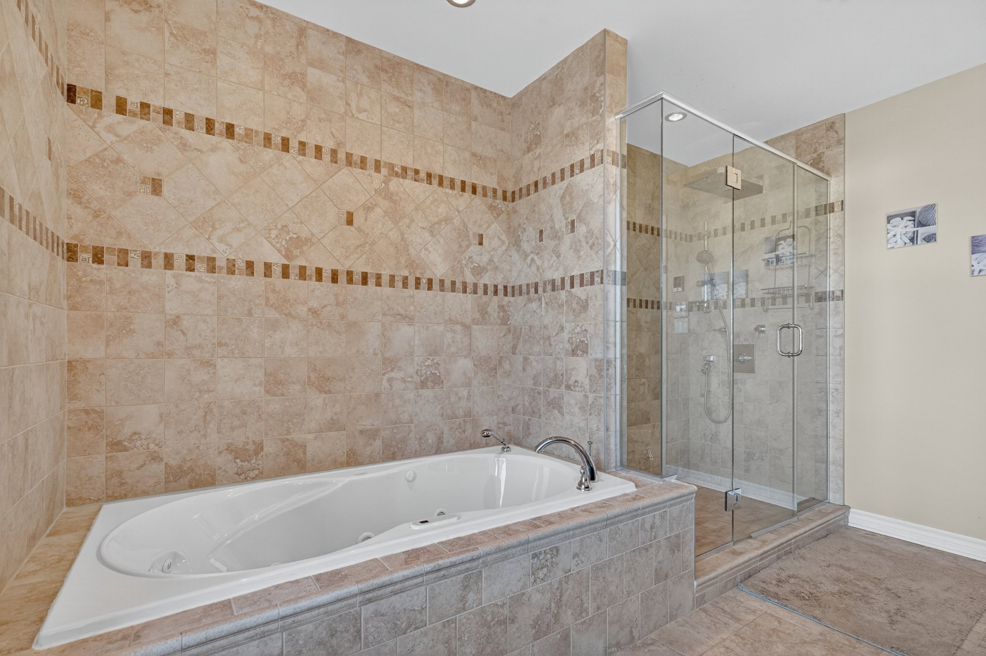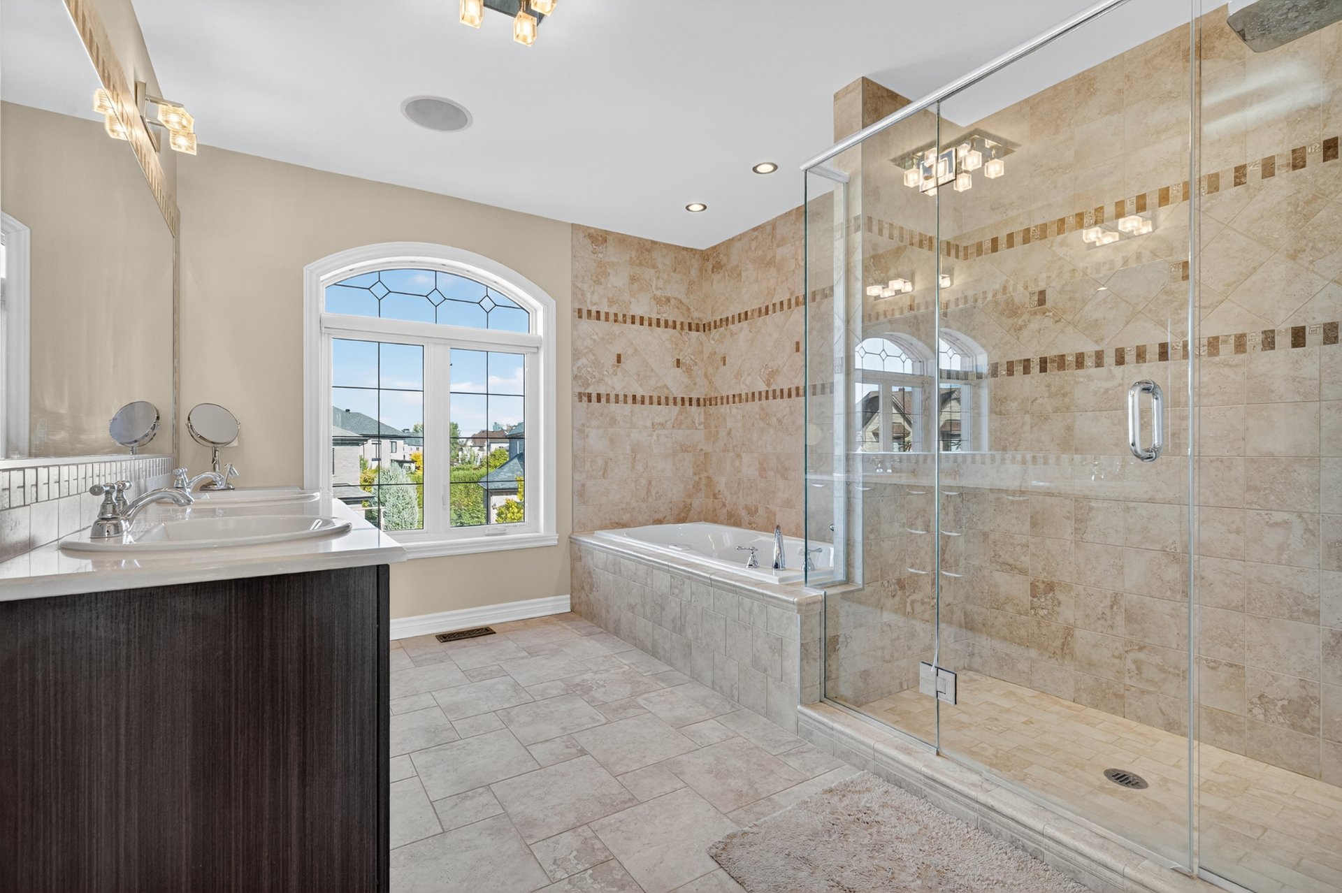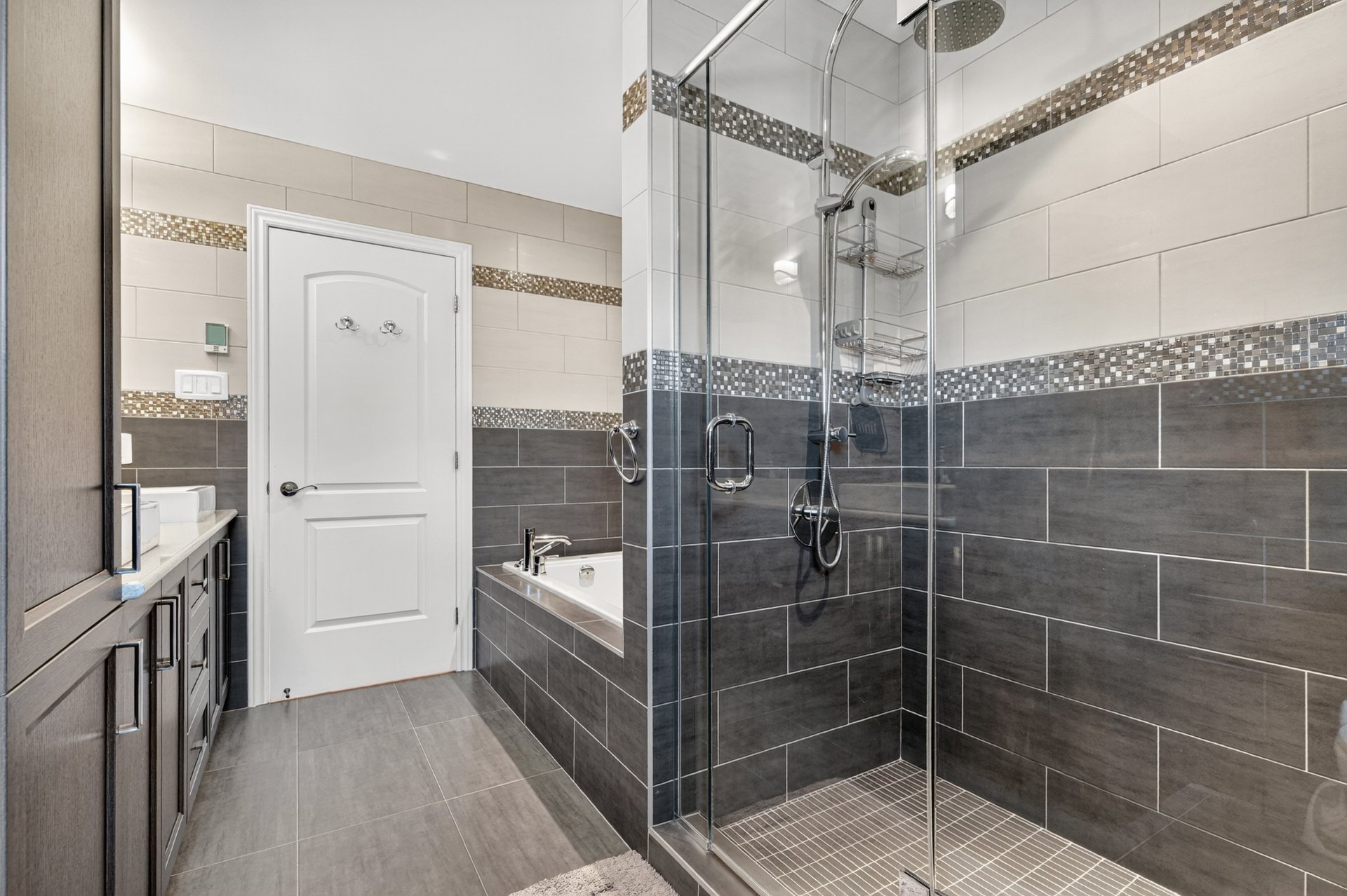 bathrooms, both of which are equipped with heated floors,