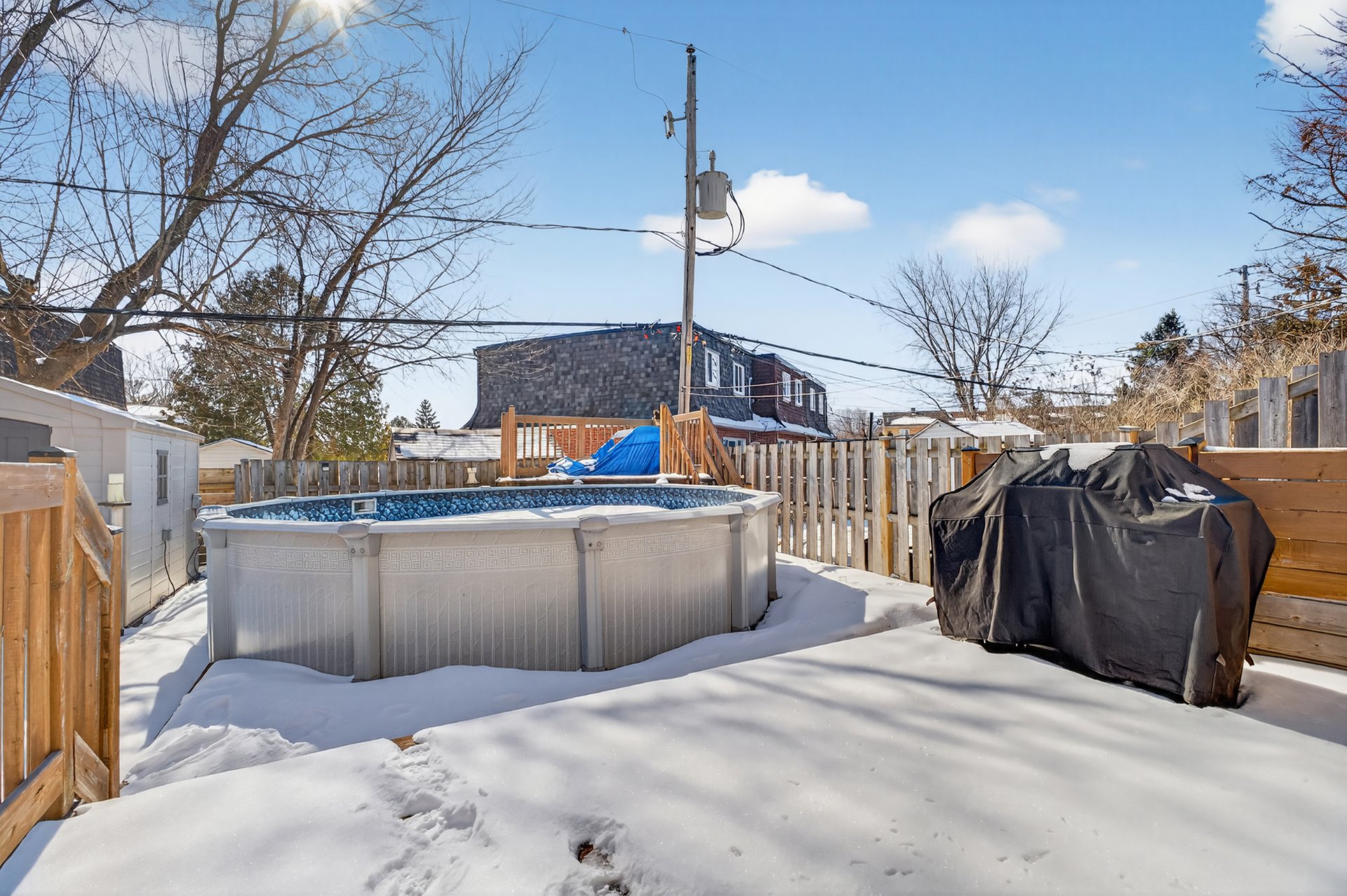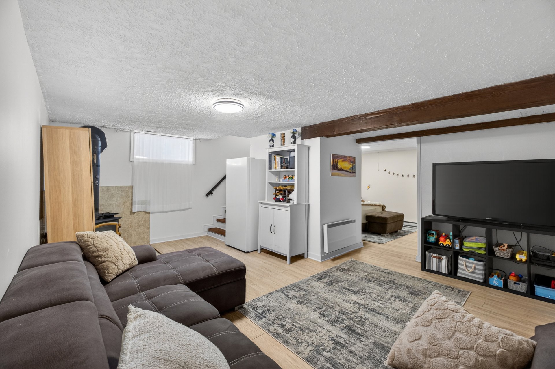 Charming semi-detached home at 90 Rue la Salle in Vieux Saint-Eustache. Features 2 full bathrooms, 3 bedrooms upstairs, plus a basement bedroom and living area with a wood stove. Bright main living spaces with a new kitchen. Backyard with awning, heated pool, and shed. Minutes from the old town, markets, a vineyard, Highway 640, REM Deux-Montagnes, and Rivière des Mille Îles. Perfect family home combining comfort, nature, and convenience.
