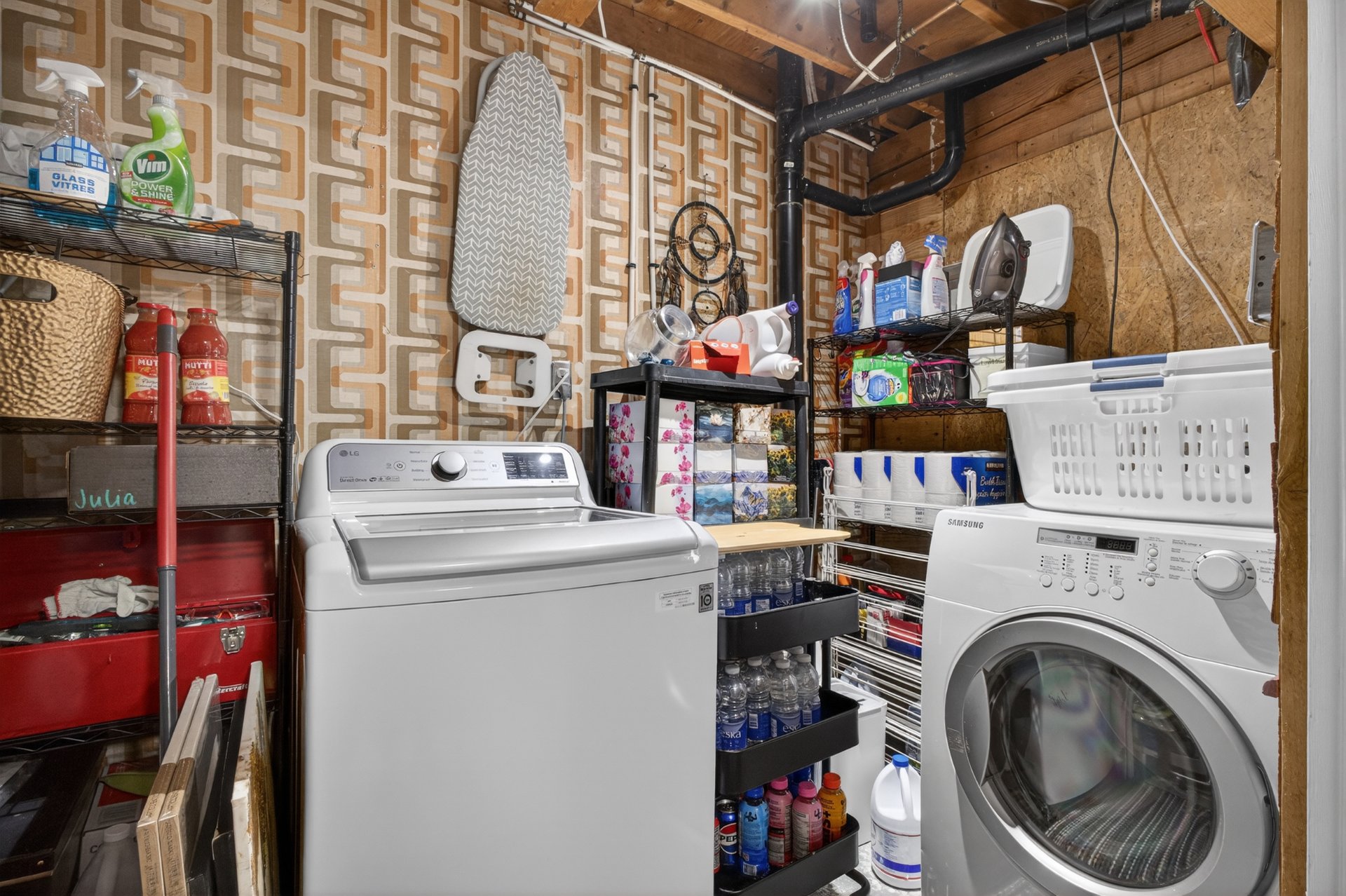 Excluded The gray curtains and curtain rods in the toddler's room, fridge, stove, stand-up freezer, washer and dryer.
